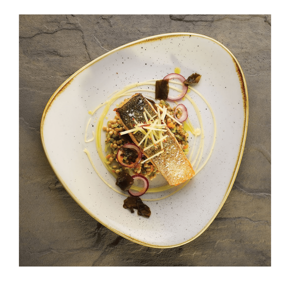 Dreieckiger Teller Creme 28.5 – Ein Meisterstück in Ihrer Tischdekoration