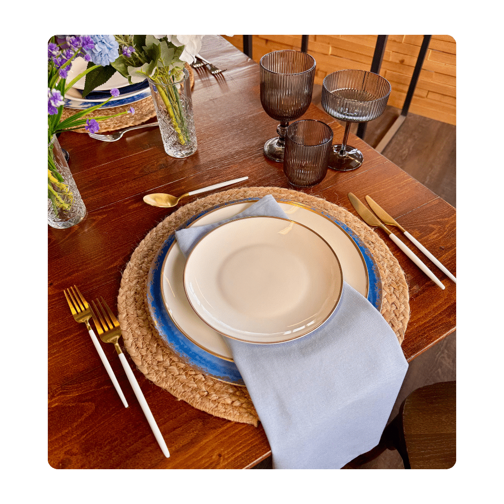Eine Serviette mag auf den ersten Blick als ein kleines Detail erscheinen, aber es kann einen grossen Unterschied machen, wenn es um die Gesamtwirkung Ihrer Tischdekoration geht. Mit der Miete der Serviette Light Blue haben Sie die Möglichkeit, Ihre Tischdekoration individuell und saisonal zu gestalten, ohne sich um Lagerung und Pflege kümmern zu müssen. Darüber hinaus ist es eine kosteneffiziente Lösung, besonders wenn Sie eine grosse Veranstaltung planen.