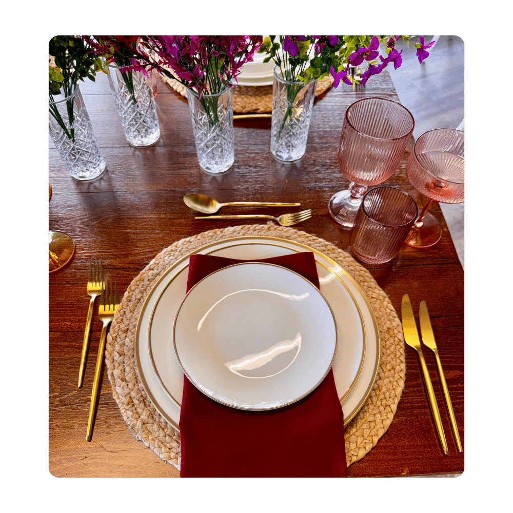 Die Serviette Burgundy ist vielseitig einsetzbar. Sie passt perfekt zu Hochzeiten, Galadinners, Jubiläumsfeiern oder auch zu einem gemütlichen Abendessen mit Freunden. Kombinieren Sie sie mit unserem Tischtuch 225 cm x 330 cm Antique Rose oder dem Napperon für ein harmonisches Gesamtbild. Für eine ausgefallene Tischdekoration können Sie sie auch mit unserem Leinentischtuch rund Ø 330cm Offwhite oder der Serviette Champagner kombinieren.