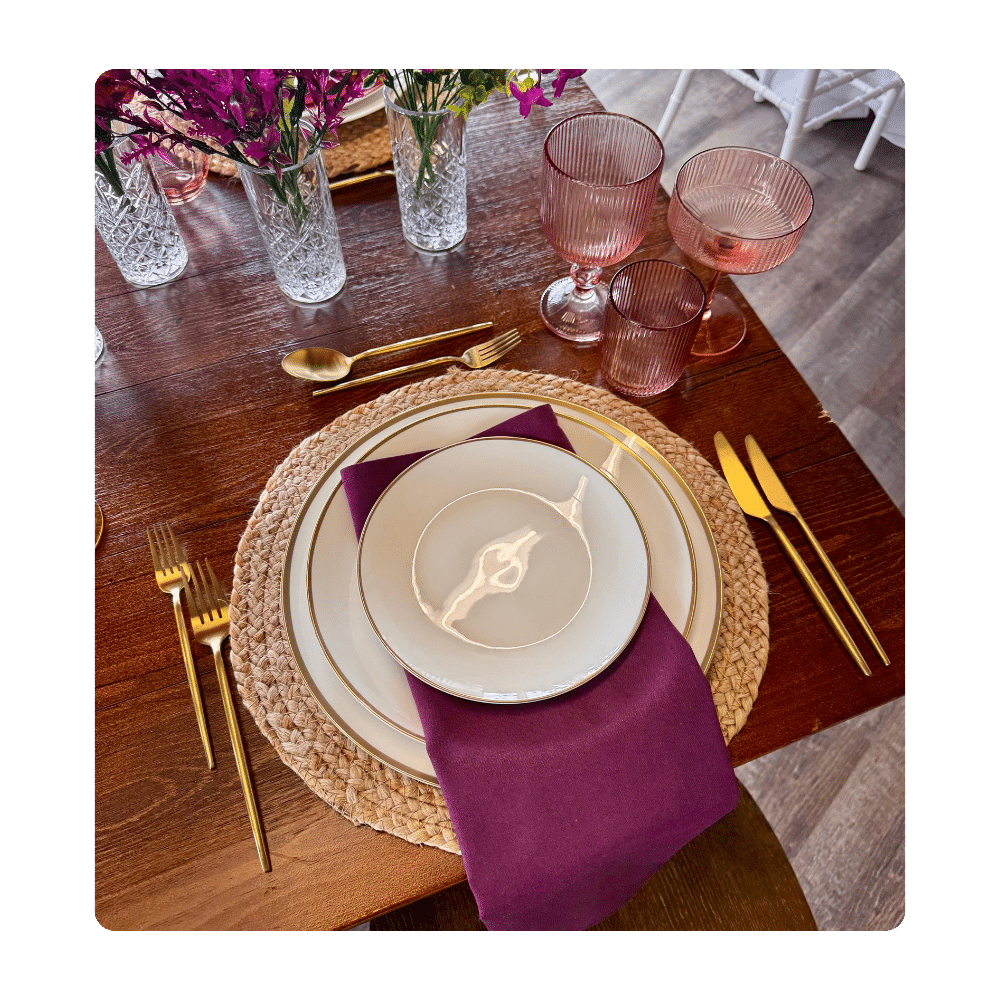 Verleihen Sie Ihrer Veranstaltung das gewisse Etwas, mieten Sie jetzt die Serviette Plum und lassen Sie Ihre Gäste staunen!
