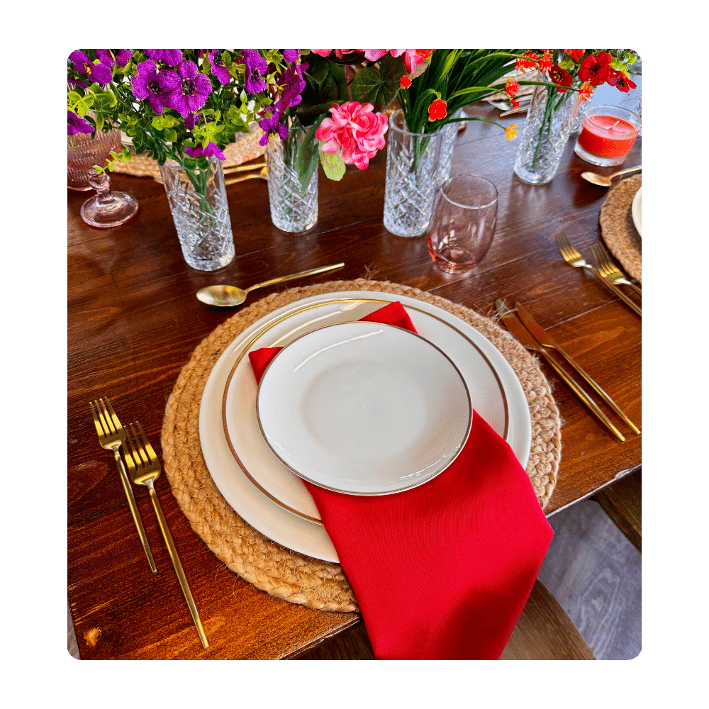 Bringen Sie Farbe und Stil auf Ihren Tisch. Mieten Sie die Serviette Red noch heute und verwandeln Sie Ihr Essen in ein unvergessliches Erlebnis. Ihrer Kreativität sind keine Grenzen gesetzt. Lassen Sie Ihren Tisch in neuem Glanz erstrahlen. Mieten Sie jetzt!