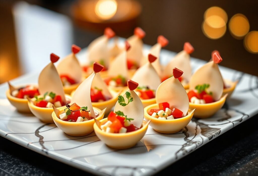 Um Ihre Schiffchen an verschiedene Ernährungsbedürfnisse anzupassen, können Sie beispielsweise glutenfreie Wraps oder Gemüseboote als Basis verwenden. Für vegane Optionen könnten Sie pflanzliche Aufstriche oder Tofu-Füllungen wählen. Nutzen Sie frische Kräuter und Gewürze, um den Geschmack zu intensivieren, ohne tierische Produkte zu verwenden. So ermöglichen Sie es jedem, in den Genuss Ihrer kreativen Amuse-Bouche zu kommen.