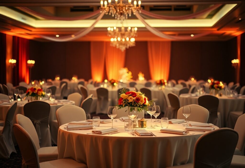 Um die Beleuchtung optimal einzusetzen, sollten Sie sowohl funktionale als auch dekorative Lichtquellen kombinieren. Kerzen auf den Tischen schaffen eine romantische Stimmung, während hintergrundbeleuchtete Elemente die gesamte Räumlichkeit erhellen kÜnnen. Denken Sie daran, dass Licht auch Farben beeinflusst, und passen Sie Ihre Beleuchtung an die Farbpalette Ihrer Veranstaltung an, um einen harmonischen Gesamteindruck zu erzielen.