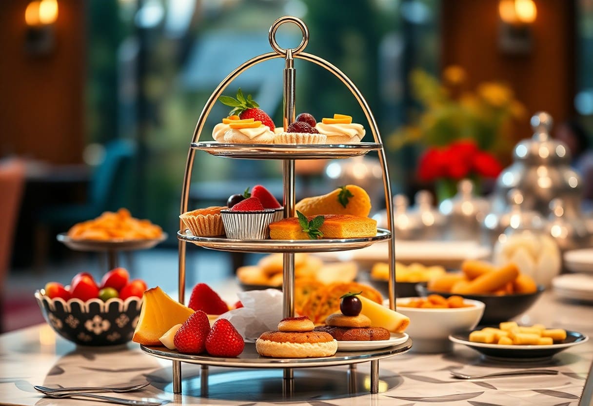 Bei der Gestaltung Ihrer Etagere sollten Sie auf eine harmonische Balance zwischen Höhe und Farbe achten. Wählen Sie verschiedene Höhen für Ihre Präsentationen, sodass die verschiedenen Ebenen nicht nur ansprechend aussehen, sondern auch die Augen der Gäste anziehen. Kombinieren Sie unterschiedliche Farben, um das Arrangement lebhaft und einladend zu gestalten.