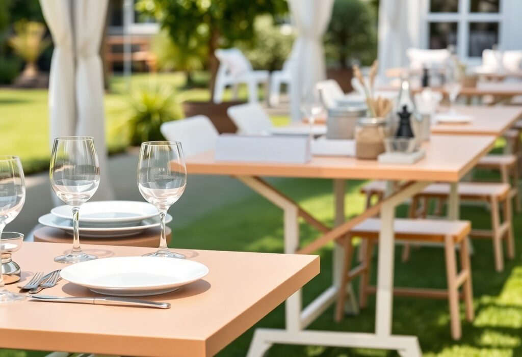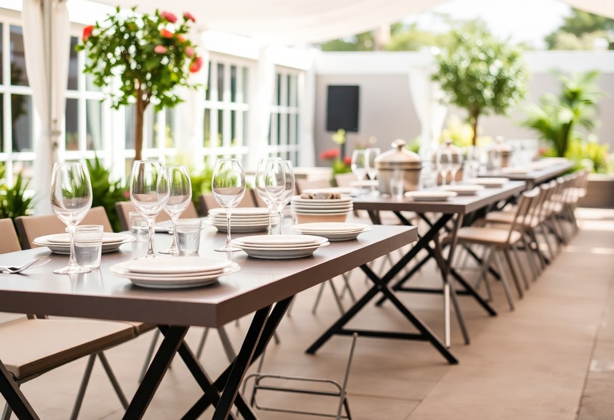 Wenn Sie ein effizientes Catering-Event planen, stehen die Wahl der richtigen Möbel und der passenden Ausrüstung im Fokus. Platzsparende Klapptische bieten Ihnen die Flexibilität, die Sie benötigen, um den Raum optimal zu nutzen, während hochwertige Serviceausrüstung sicherstellt, dass Ihre Gäste einen erstklassigen Service erleben. In diesem Artikel erfahren Sie, wie Sie durch das Mieten dieser Elemente Ihren Catering-Service deutlich effizienter gestalten können. So wird Ihr Event nicht nur optisch ansprechend, sondern auch funktional und komfortabel für alle Beteiligten.