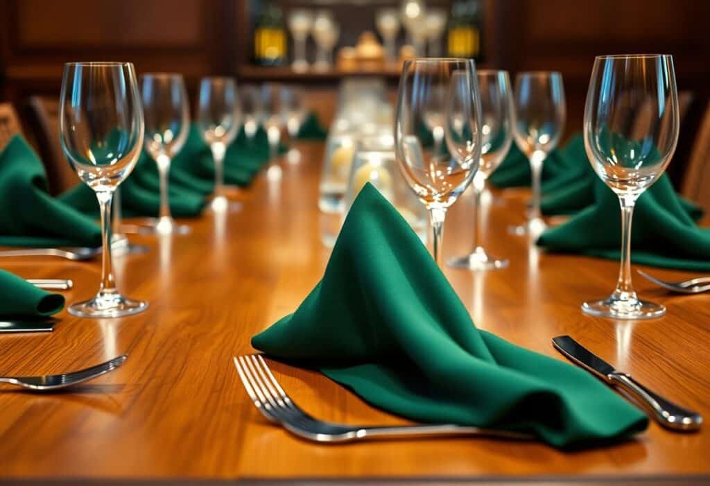 Um dich herum, schaffen dunkelgrßne Servietten einen noblen Rahmen fßr Ihre Tische, der Ihre Gäste beeindruckt.