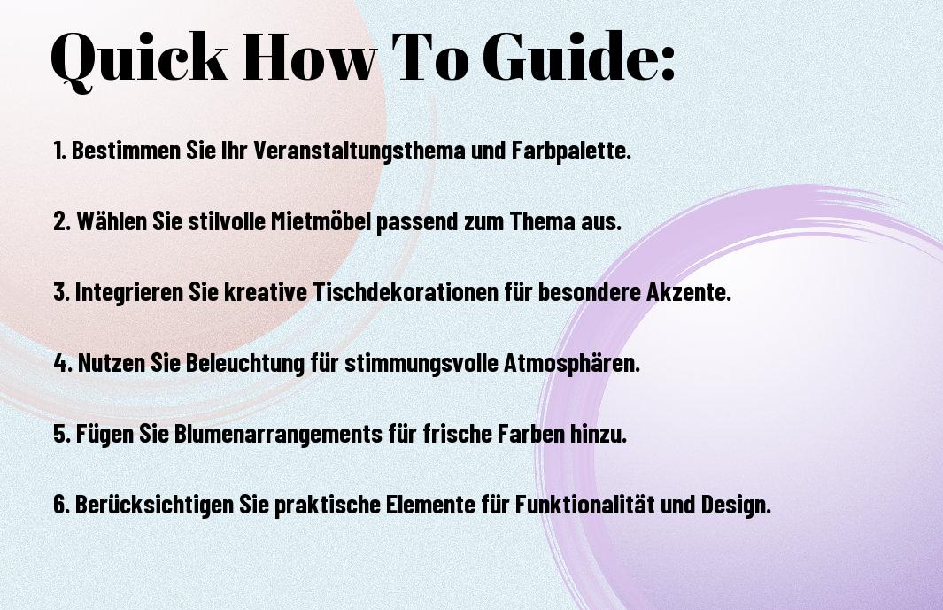 Bei der Auswahl der Dekorationen für Ihr Event gibt es mehrere wichtige Faktoren zu beachten, um sicherzustellen, dass alles harmonisch und ansprechend wirkt. Diese Faktoren sind entscheidend, um eine einladende Atmosphäre zu schaffen und Ihre Veranstaltung aufwerten zu können.