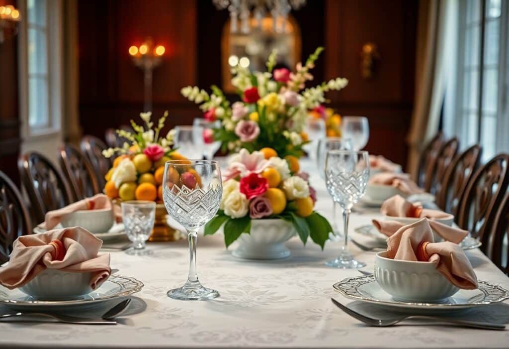 Die richtige Kombination aus Tischwäsche und Geschirr kann den Gesamteindruck Ihres Tischs erheblich verbessern. Beginnen Sie mit einer eleganten Tischdecke als Basis und fßgen Sie romantische Tischläufer hinzu, um Dimension und Tiefe zu schaffen. Nutzen Sie Servietten in Komplementärfarben, um das Geschirr zu akzentuieren und eine harmonische Atmosphäre zu schaffen. Experimentieren Sie mit verschiedenen Texturen, um das visuelle Interesse zu maximieren.
