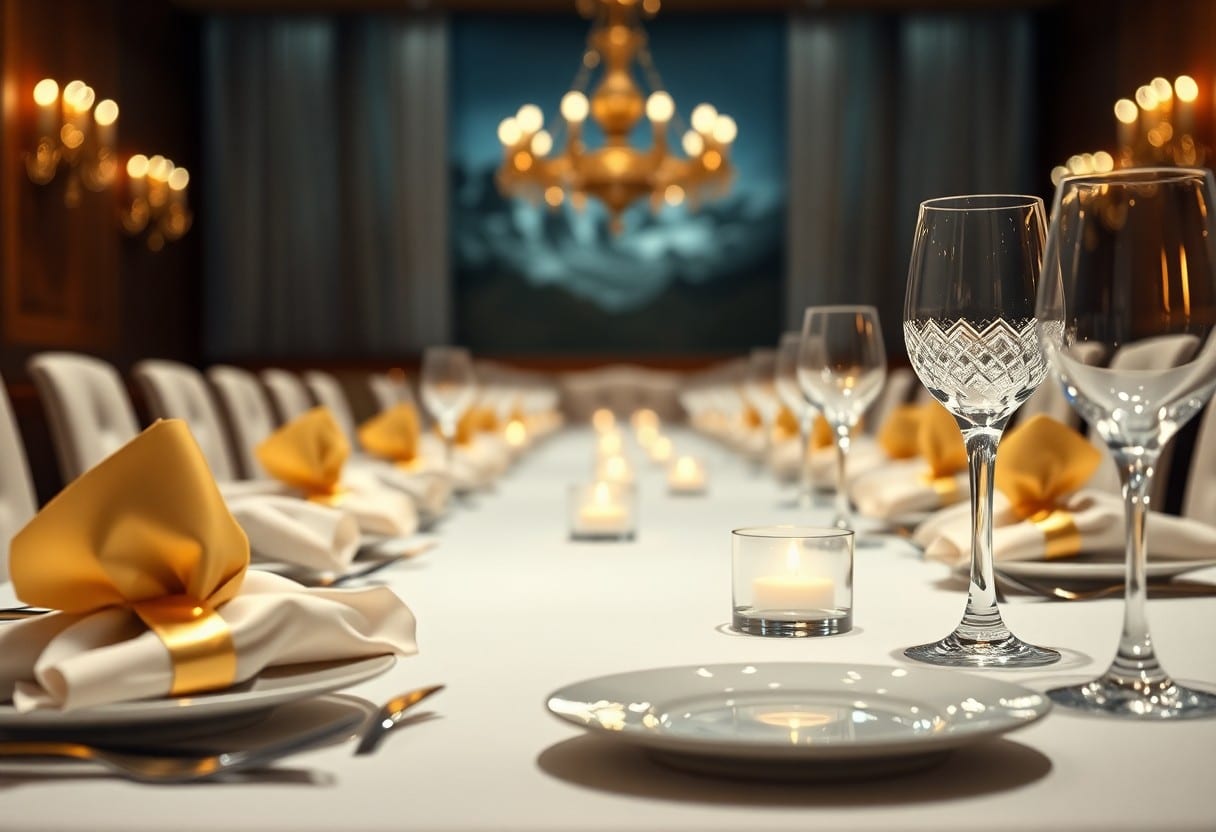 Um Ihre goldenen Serviettenringe ideal zu arrangieren, nutzen Sie die MĂśglichkeit, mit verschiedenen HĂśhen und Texturen zu arbeiten. Stellen Sie sicher, dass alle Ringe auf gleicher HĂśhe positioniert sind, um ein harmonisches Gesamtbild zu erzeugen. Ăbrigens wirken verspielte Faltungen der Servietten in Kombination mit den Ringen besonders eindrucksvoll. Experimentieren Sie ruhig mit verschiedenen Anordnungen, um den perfekten Look fĂźr Ihren Tisch zu schaffen.