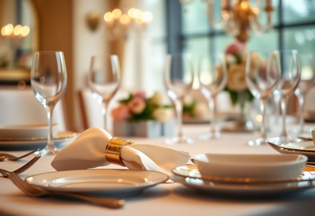 Die Verwendung von goldenen Serviettenringen verleiht Ihrem gedeckten Tisch nicht nur eine elegante Note, sondern hebt auch jedes Dinner-Event auf ein neues Niveau. Sie sind vielseitig einsetzbar und kÜnnen sowohl bei formellen Anlässen als auch bei zwanglosen Zusammenkßnften beeindrucken. Achten Sie darauf, die Serviettenringe harmonisch mit anderen Tischdekorationen abzustimmen, um ein stimmiges Gesamtbild zu schaffen. Durch die sorgfältige Auswahl und Anordnung dieser glänzenden Details schenken Sie Ihren Gästen ein unvergessliches Ambiente, das in Erinnerung bleibt.