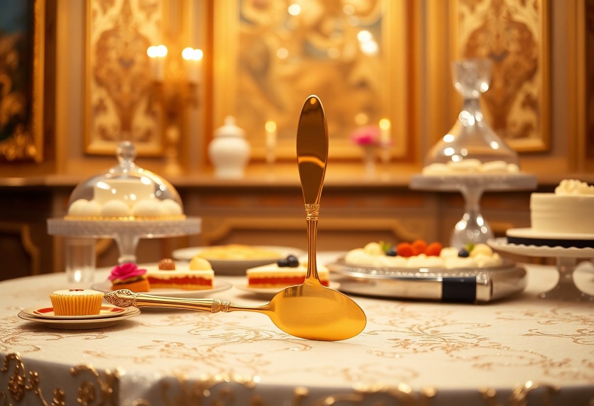 Mit goldene Tortenheber und anderen Luxus-Tischwaren können Sie Ihre Gäste in eine Welt der Eleganz und des Luxus entführen. Sie können Ihre Kreativität ausleben und das Event zu einem unvergesslichen Erlebnis machen.