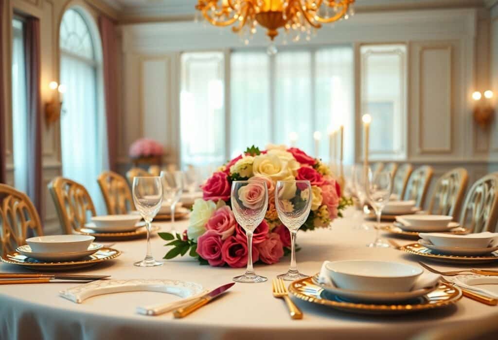 Nutzen Sie auch persönliche Elemente wie handgeschriebene Platzkarten oder kleine, individuelle Geschenke, um die Tischgestaltung abzurunden. Diese Details tragen dazu bei, dass sich Ihre Gäste besonders geschätzt fühlen und verbinden sich zudem bestens mit dem nostalgischen Flair, das goldenes Besteck vermittelt. Verbinden Sie Ästhetik mit Funktionalität und schaffen Sie so einen unvergesslichen Dinnermoment.