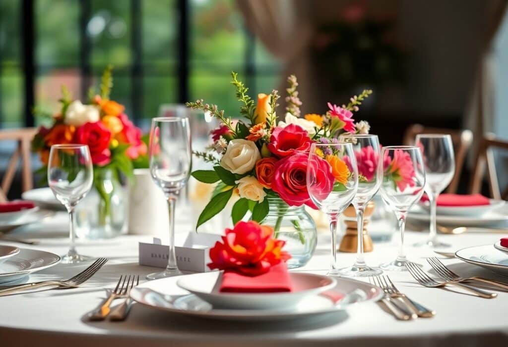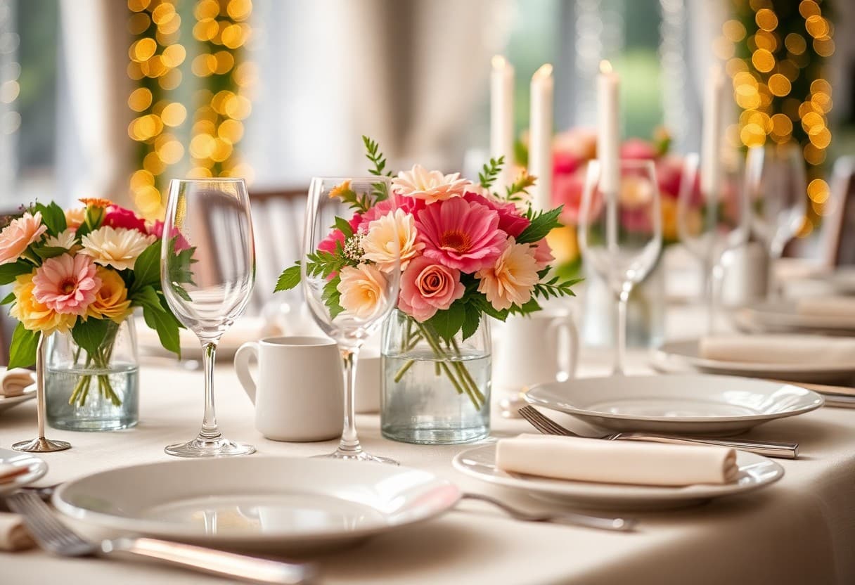 - Dekorationen wie Blumen, Kerzen und Girlanden