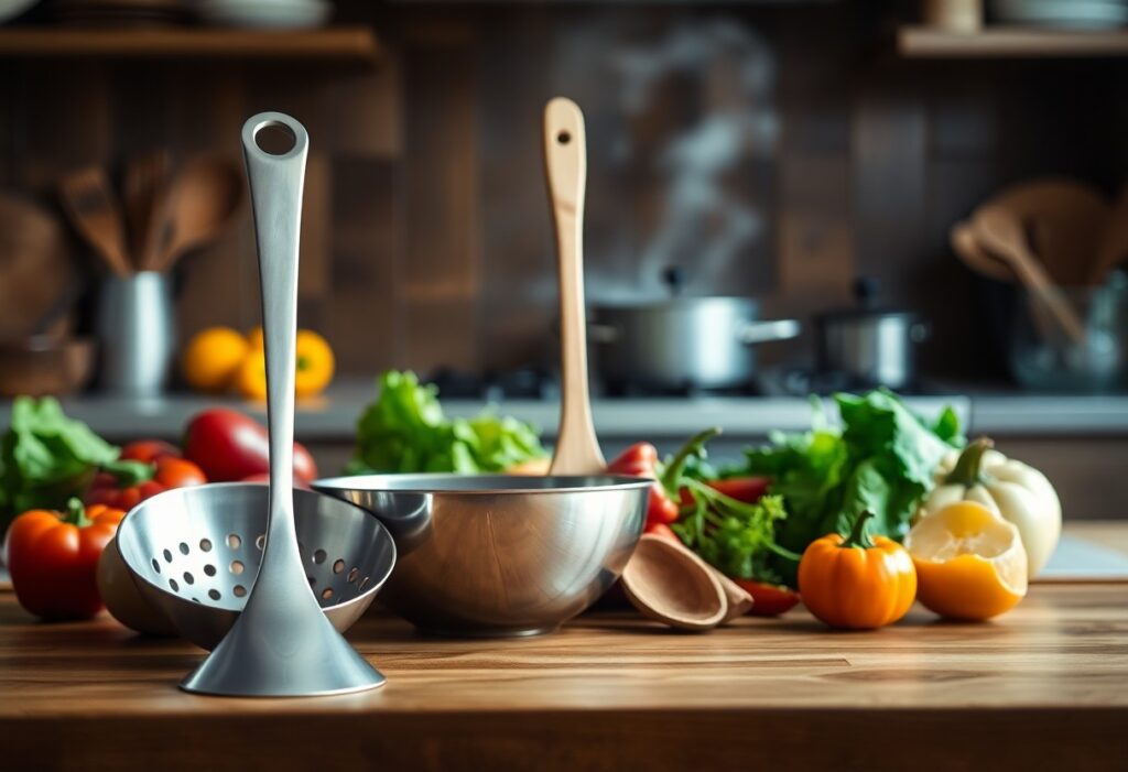 In vielen klassischen Gerichten spielen Schaumlöffel und Schöpflöffel eine zentrale Rolle. Sie helfen Ihnen, Brühen und Saucen skumfrei zu halten und ermöglichen es Ihnen, praktische Portionen von Suppen oder Eintöpfen abzumessen. Bei der Zubereitung von Gerichten wie Risotto oder Gulasch sind diese utensilien unverzichtbar, um die gewünschte Konsistenz und den vollen Geschmack zu erreichen.