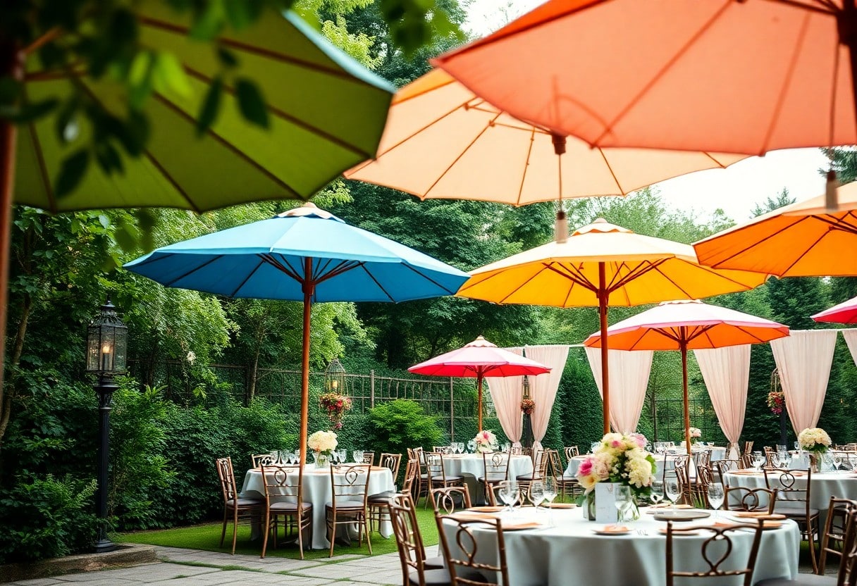 Habe keine Angst, mit verschiedenen Höhen und Strukturen zu experimentieren! Dekorative Elemente und Sonnenschirme können zusammen eine optische Durchlässigkeit erzeugen, die das Gesamtbild auflockert. Überlege, wie du deinen Raum unter den Schirmen gestalten kannst, damit die Gäste nicht nur Schutz, sondern auch eine unvergessliche Erfahrung genießen.