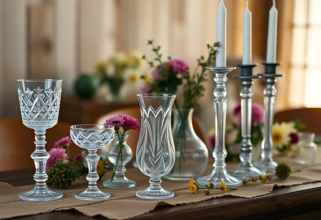 Jetzt kommen wir zum wirklich spannenden Teil: den Bastelideen für deine Hochzeitsdekoration! Vintage-Glaswaren bieten dir die Möglichkeit, verschiedene kreative Ansätze zu verwirklichen. Du kannst alte Einmachgläser als >Kartenhalterrustikalen Charme zu erzeugen, der deinem Hochzeitskonzept das gewisse Etwas verleiht.