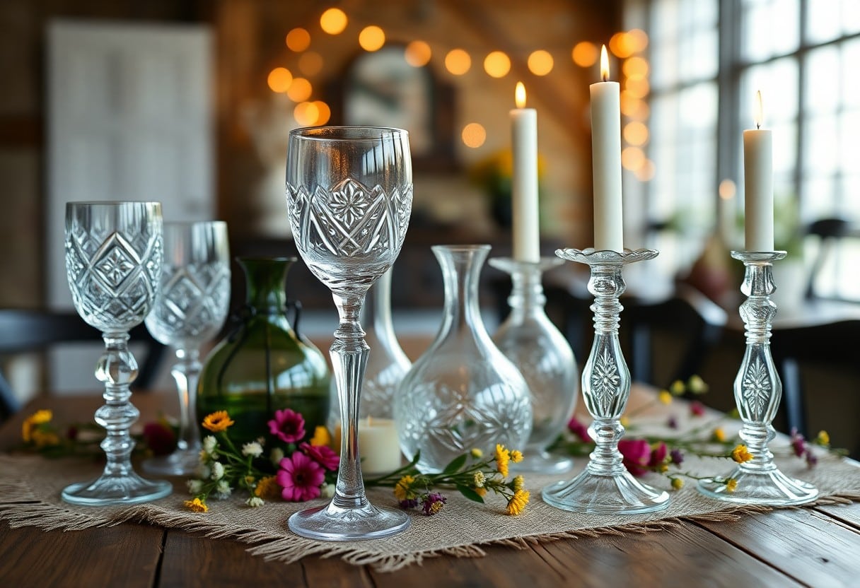 Die Kombination von Vintage-Glaswaren mit anderen Materialien kann wirklich zauberhafte Effekte erzielen! Du kannst sie mit natürlichen Elementen wie Holz, Jute oder Blumen kombinieren, um einen harmonischen Kontrast zu schaffen. Stell dir vor, wie traumhaft es aussieht, wenn klare Glasvasen auf einem rustikalen Holztisch stehen, umgeben von Wildblumen – das ist pure Magie!