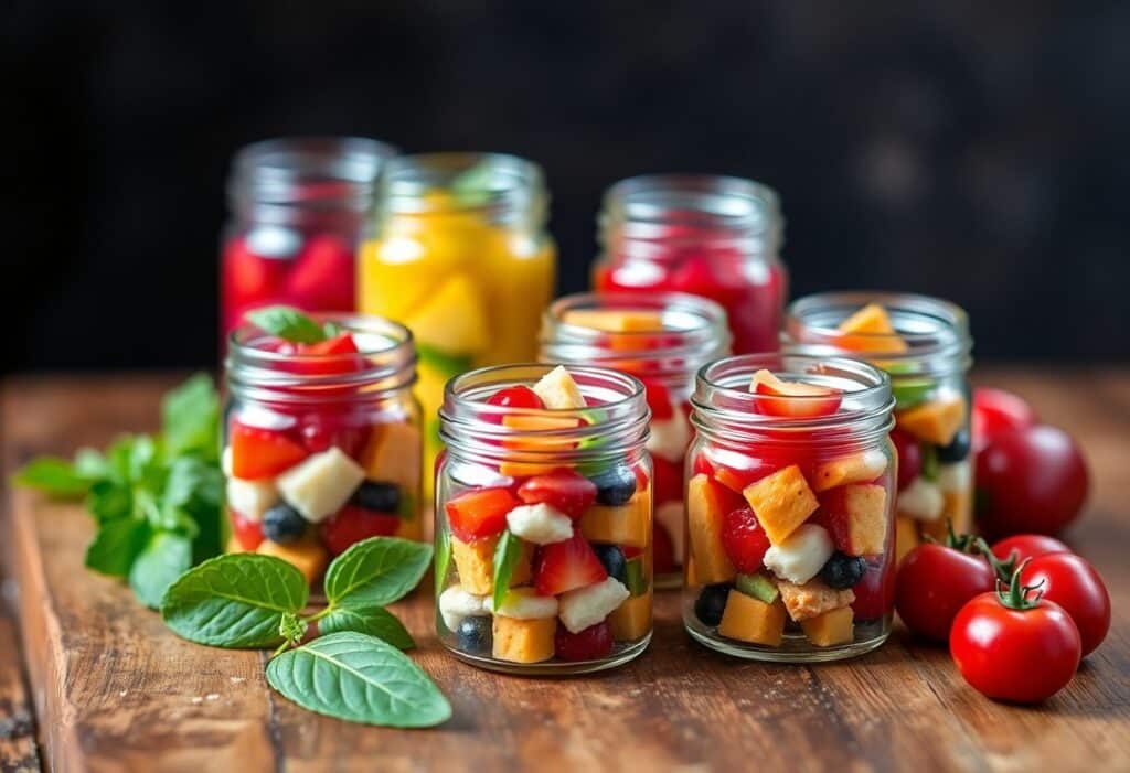 Um den Mini Caprese-Salat zuzubereiten, schneiden Sie frische Tomaten und Mozzarella in gleichmässige Stßcke und schichten Sie diese abwechselnd in Ihr Weck-Glas. Fßgen Sie frische Basilikumblätter zwischen den Schichten hinzu, um den Geschmack zu intensivieren. Ein Schuss OlivenÜl oder Balsamico-Glasur rundet das Gericht ab und sorgt fßr ein ansprechendes Aroma.