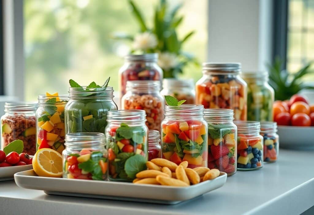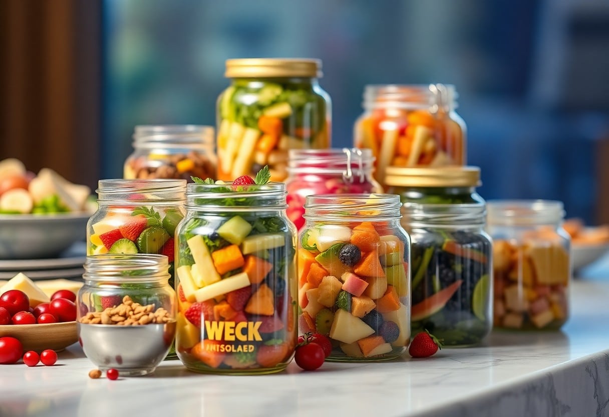 Salate in Weck-Gläsern sind nicht nur praktisch, sondern auch ästhetisch ansprechend. Sie kÜnnen verschiedene Zutaten schichten, um einen bunten, frischen Salat zu kreieren, der das Buffet bereichert. Das Anrichten von Dressings im Glas sorgt ausserdem dafßr, dass der Salat knackig bleibt und die Aromen optimal zur Geltung kommen.
