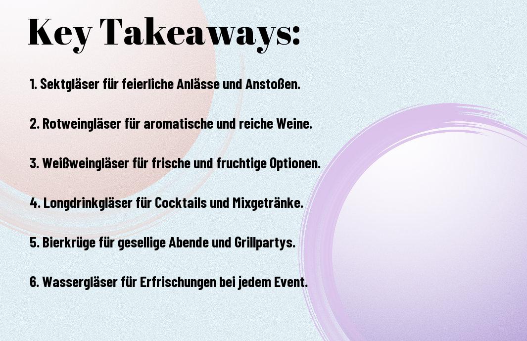 Bei der Auswahl der passenden Gläser sollten Sie sowohl den praktischen Nutzen als auch das Design berßcksichtigen. Achten Sie auf die Art der Veranstaltung, die Anzahl der Gäste und die Art der servierten Getränke, um die am besten geeigneten Gläser auszuwählen.