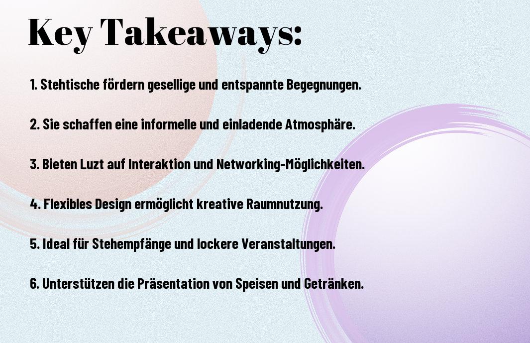 Die ideale Kombination aus Funktionalität und Ästhetik ist entscheidend, wenn Sie die richtigen Stehtische für Ihr Event auswählen. Sie möchten, dass Ihre Tische sowohl praktisch als auch ansprechend aussehen, um das Ambiente Ihrer Veranstaltung zu unterstreichen. Klare Linien und elegante Oberflächen können helfen, den gewünschten Stil zu erzielen, während praktische Funktionen wie Stauraum oder Transportfähigkeit die Benutzerfreundlichkeit erhöhen.