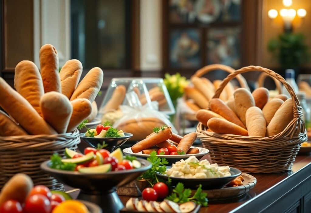 Unter den klassischen Kombinationen finden Sie Fleisch, Käse und Brot, die perfekt zu Ihrem Brotkörbchen passen. Sie können verschiedene Sorten von Brot, Käse und Fleisch auswählen, um Ihrem Buffet eine persönliche Note zu verleihen.